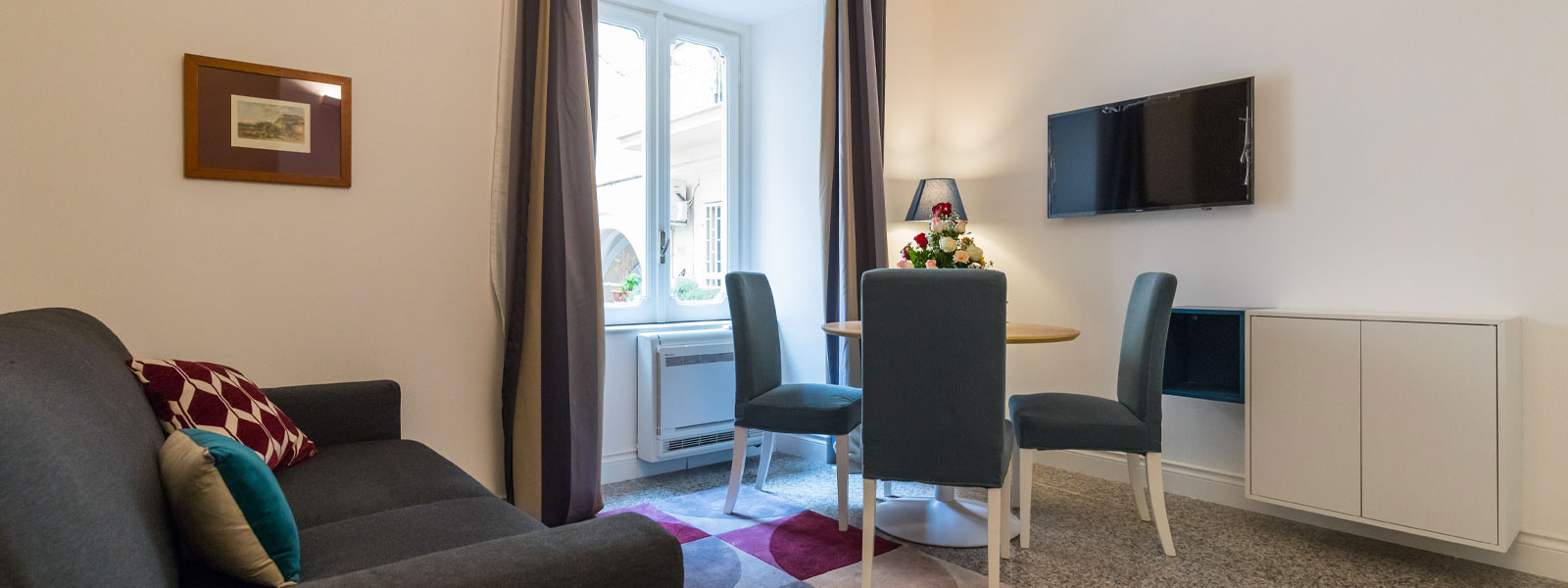 The Suites of the Gli Angioini Residence in Via Santa Lucia in Naples are large and bright, located near the seafront and sites of tourist and cultural interest. The furnishing is characterized by comfort and the refined and elegant details are cared for down to the smallest detail. The materials are carefully chosen: marble, fabrics, parquet, lighting. Everything is designed to create a warm and welcoming atmosphere.